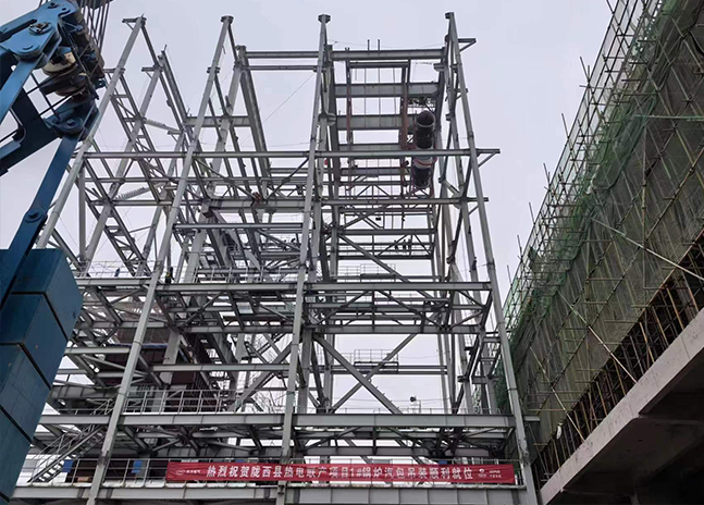 12月10日,陇西热电项目在总包方、业主、监理等单位共同见证下,顺利完成一号锅炉汽包吊装工作。