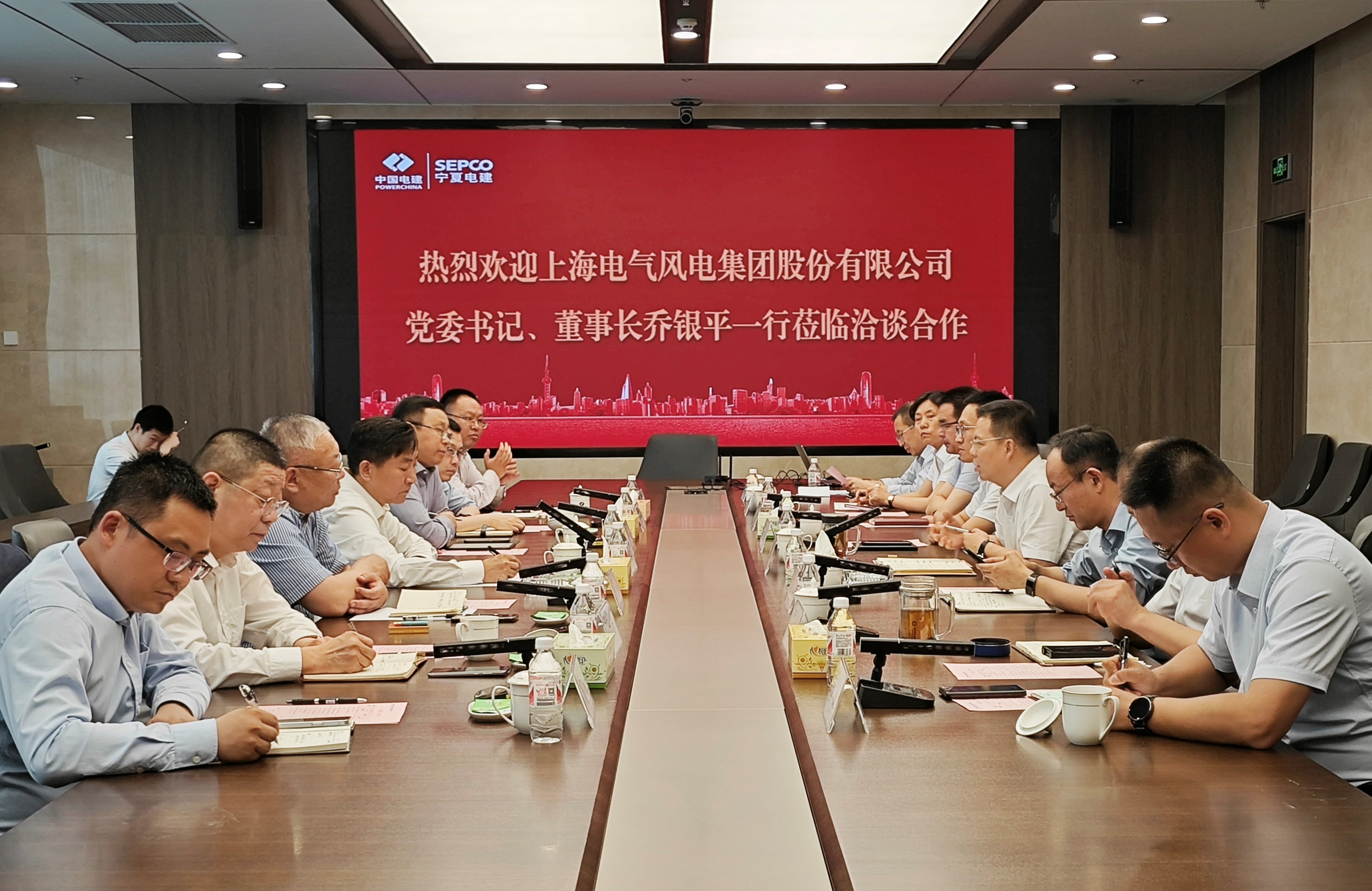 5月28日,上海电气风电集团股份有限公司党委书记、董事长乔银平一行到公司洽谈合作。公司党委书记、董事长李坤,副总经理、总工程师铁少斌、总会计师朱磊建及市场部、工程部、企管质保部、办公室、物资公司等相关负责人参加会议。