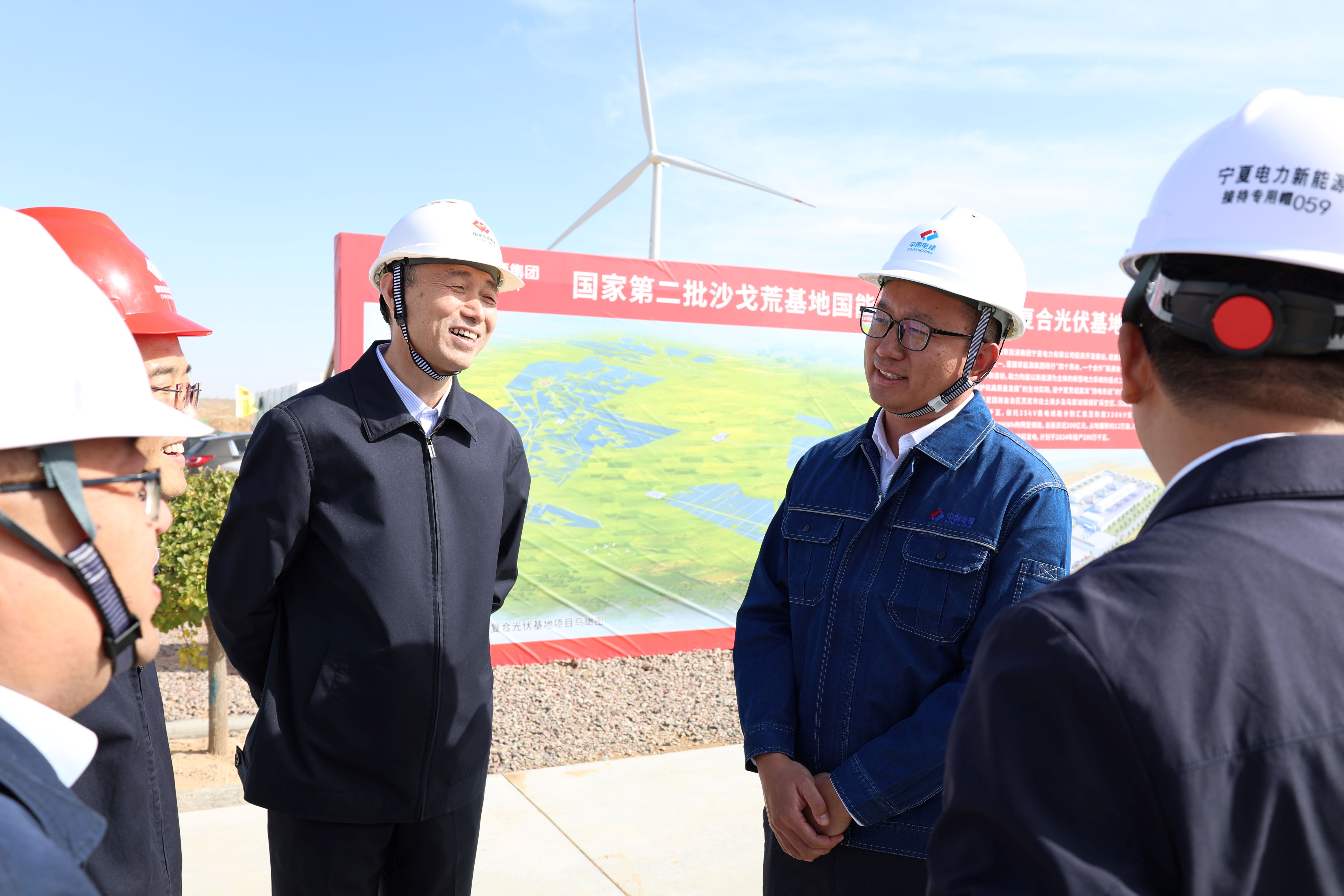 10月9日,国家能源集团总经理助理、重大项目办主任贾彦兵,国能宁夏电力公司党委书记、董事长王强,龙源电力公司总经理、党委副书记王利强,宁夏煤业总经理、党委副书记高云飞等领导到国能灵绍光伏基地配套输变电工程(南区)项目调研指导工作。公司党委副书记、董事、总经理李扬陪同调研。
