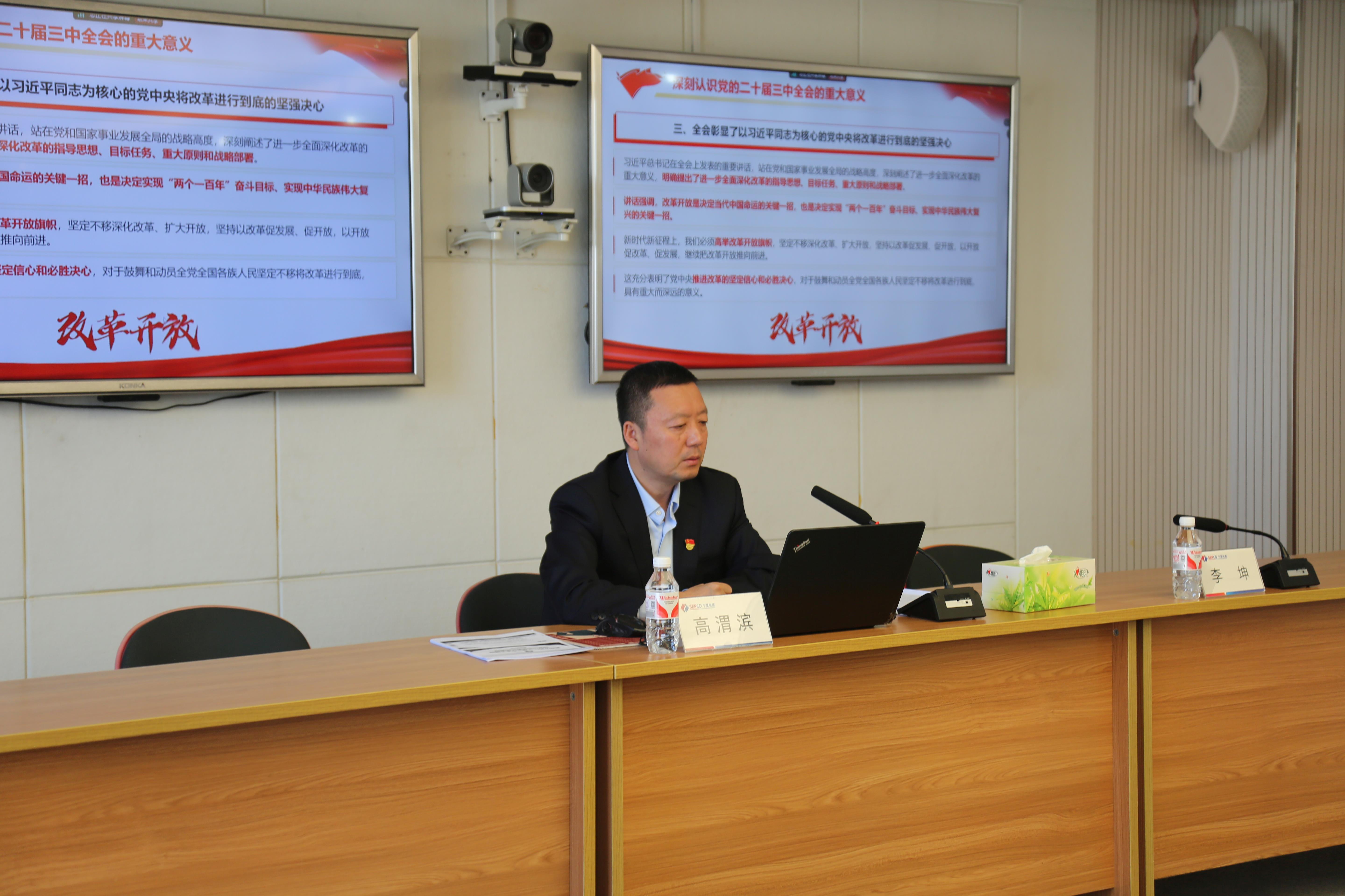 会上,高渭滨作了主题为《贯彻党的二十届三中全会精神 加强公司债务风险管控》的党课,带领大家深入学习贯彻习近平总书记关于全面深化改革的重要论述,要求大家要坚持好、运用好贯穿其中的立场、观点、方法,全力以赴抓好全会精神落到实处。
