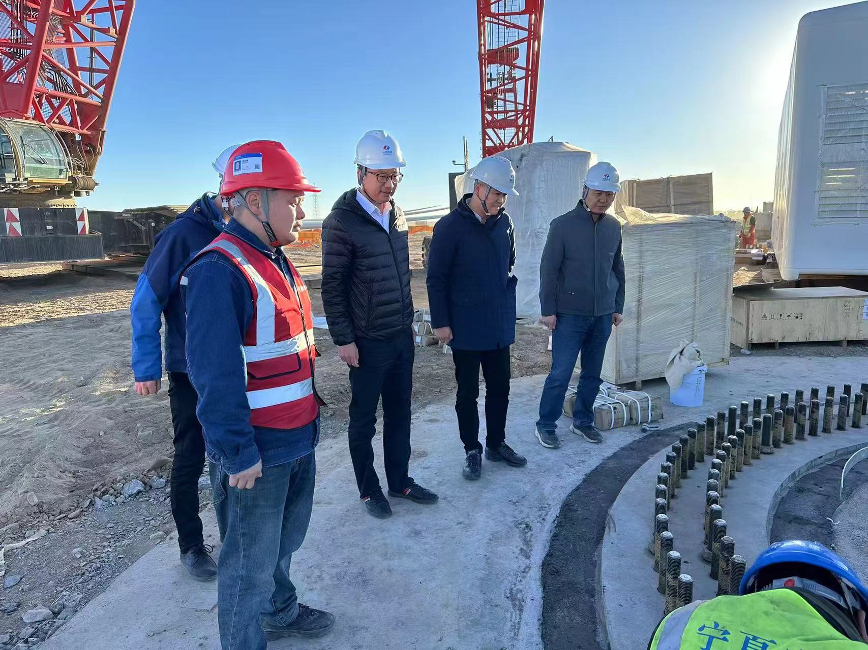 李扬一行在项目团队陪同下深入现场查看风机场区、升压汇集站建设情况,对项目安全、质量、履约等方面进行全面了解,与建设单位相关领导就工期进度、资金支付、物资供应、人员配置等问题进行深入交流,帮助项目协调履约过程中存在的突出问题,力促项目稳步前进。