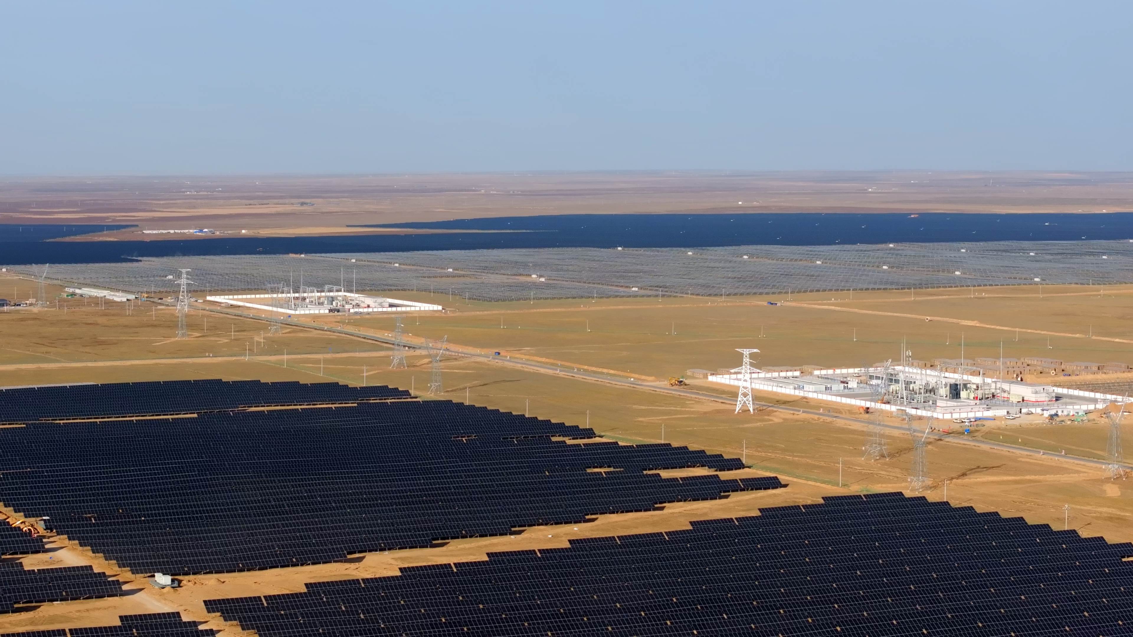 项目位于内蒙古自治区鄂尔多斯市鄂托克前旗上海庙镇,总投资约120亿元,是国家第二批“沙戈荒”大型新能源发电基地项目,也是国家“西电东送、西部开发”内蒙古鄂尔多斯上海庙至山东临沂±800千伏特高压直流输电工程重点配套项目。项目占地约10.5万亩,铺设超过590万块光伏组件,装机容量达300万千瓦。