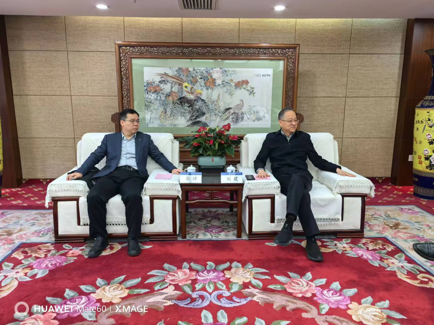 拜访刘建时,李坤介绍了公司改革发展的最新成果,他指出,近年来,公司在手订单充足,客户满意率逐年提高,项目履约成效显著,业务范围多点并举,并于今年取得了电力施工总承包特级资质和行业甲级设计资质,助力公司走上了新型高质量发展道路。随后,双方就克孜勒苏柯尔克孜自治州阿图什50万光伏项目相关细节进行交流。