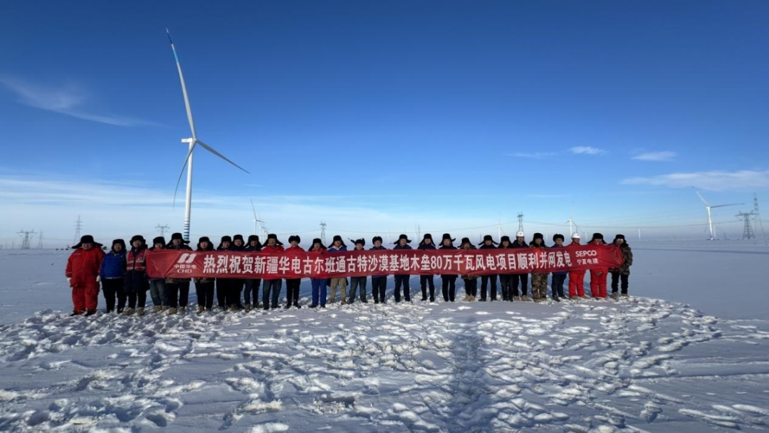 12月29日,华电新疆古尔班通古特风电项目顺利实现首台风机并网发电。