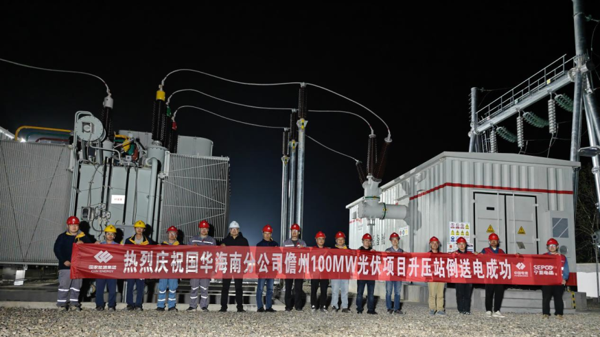 国华儋州农光互补光伏发电项目升压站倒送电一次成功