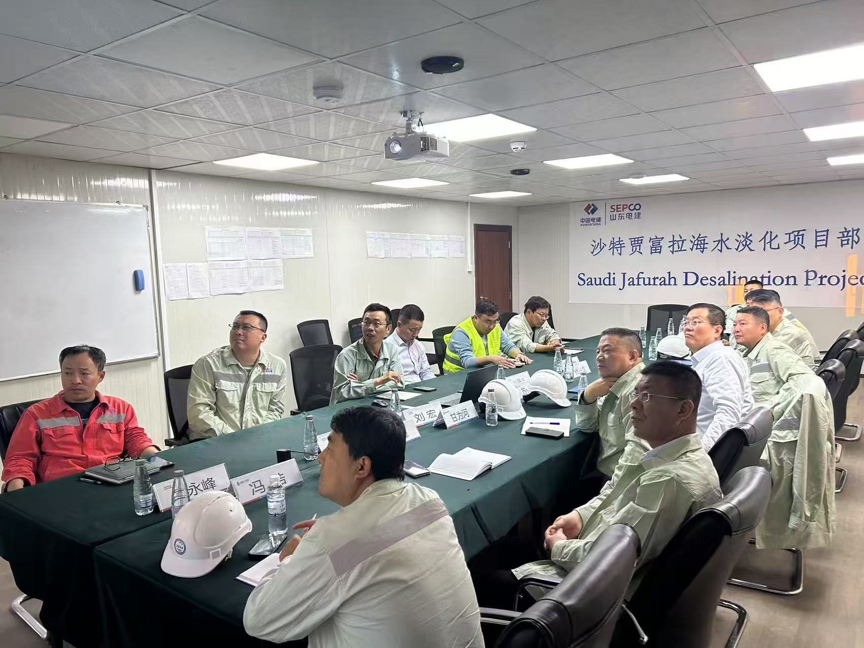 苏保周一行与山东电建贾富拉海水淡化项目部开展座谈,双方就项目履约进行了深度交流,并深入施工现场一同检查,山东电建项目部领导对宁夏公司海水淡化项目部工作给予肯定和好评,并希望项目部继续保持良好状态圆满履约,也希望宁夏公司承担总公司更多的项目。苏保周对山东电建项目部的支持表示感谢,并指出希望两个项目部加强交流沟通,高效圆满完成海水淡化项目履约,强调优势互补,互相支持,共同发展的理念,希望宁夏公司能更多地承担总公司的海外项目履约。