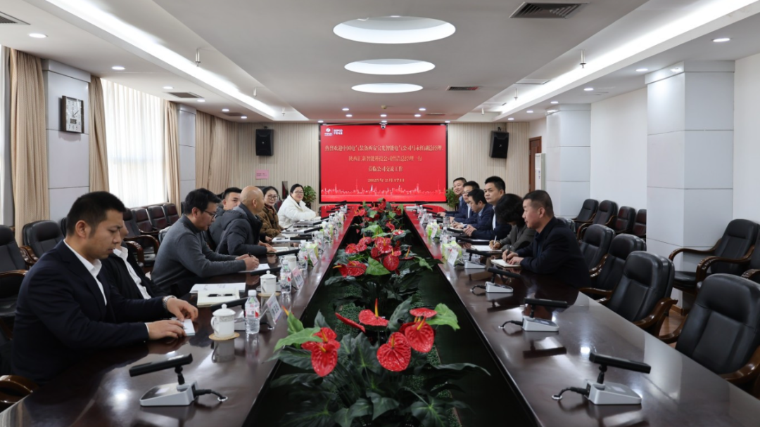 2月17日,陕西汇新智能科技有限公司总经理曾浩、西安宝光智能电气有限公司副总经理马永红、施耐德(陕西)宝光电器有限公司大客户经理刘红平一行到公司交流工作,公司党委副书记、董事、总经理石光员出席座谈。