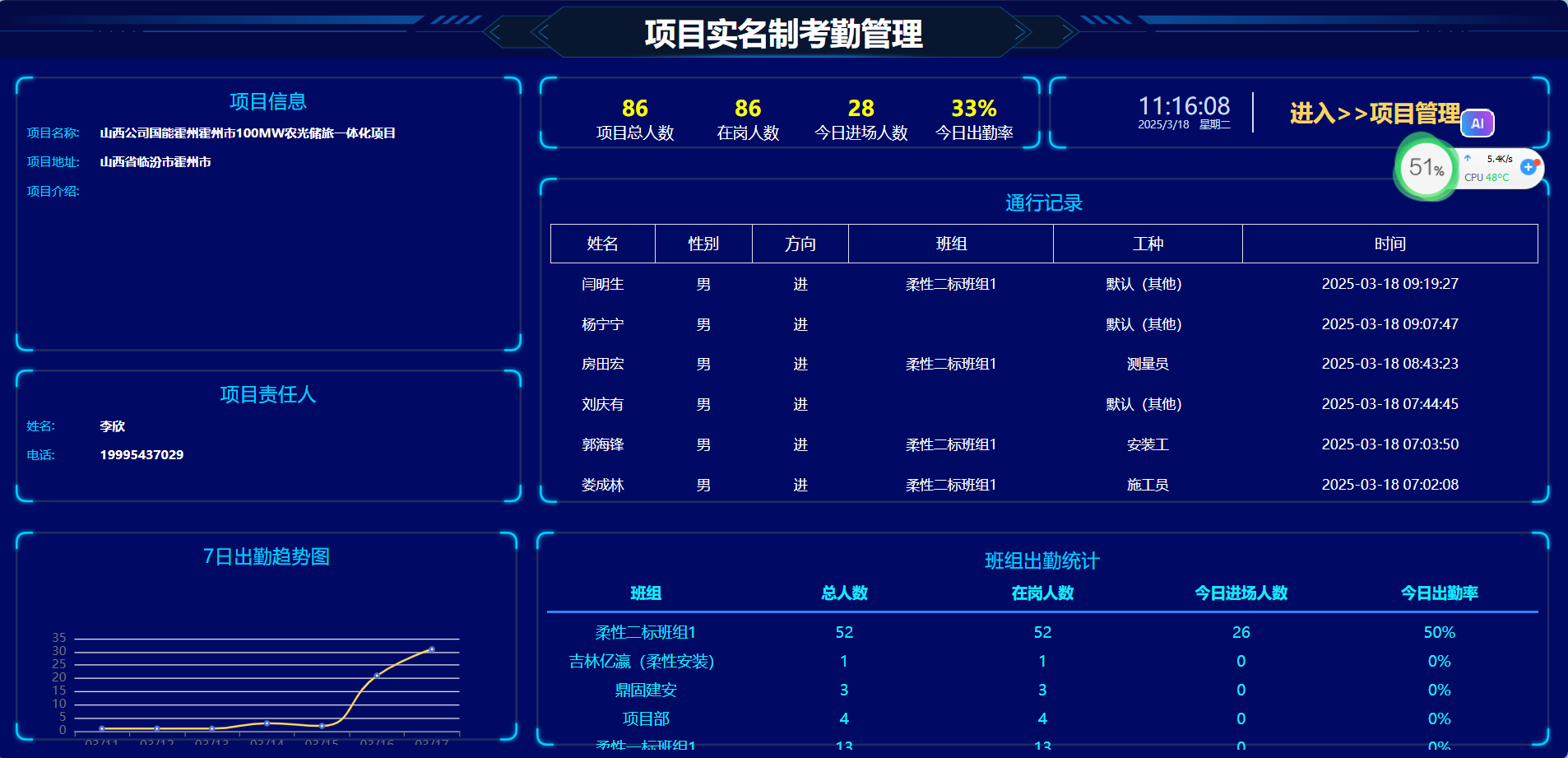 近日,公司在霍州市100MW农光储旅一体化项目中,创新应用基于北斗定位与AI人脸识别的劳务考勤管理平台,通过科技手段破解农民工讨薪纠纷中的证据缺失难题,为行业树立了智能化管理标杆。