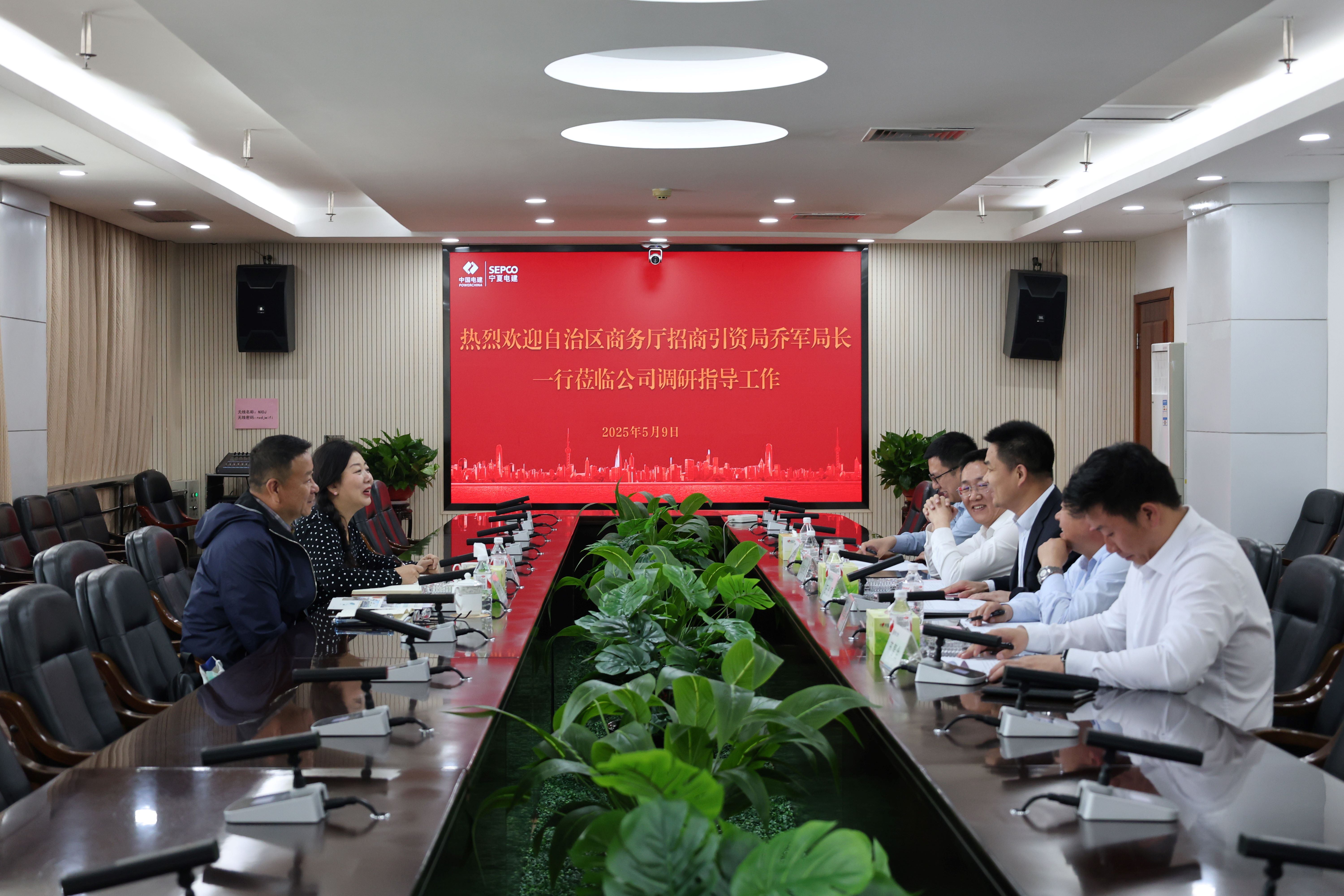 5月9日,自治区商务厅招商引资局局长乔军、调研员刘静调研指导公司工作。公司党委副书记、董事、总经理石光员,常务副总经理孟德江,副总经理孔国权参与座谈,总经理助理、国际公司总经理史红祥,市场开发部经理苏智全陪同座谈。双方围绕企业国际化发展、本土化经营及政企协同等议题展开深入探讨。