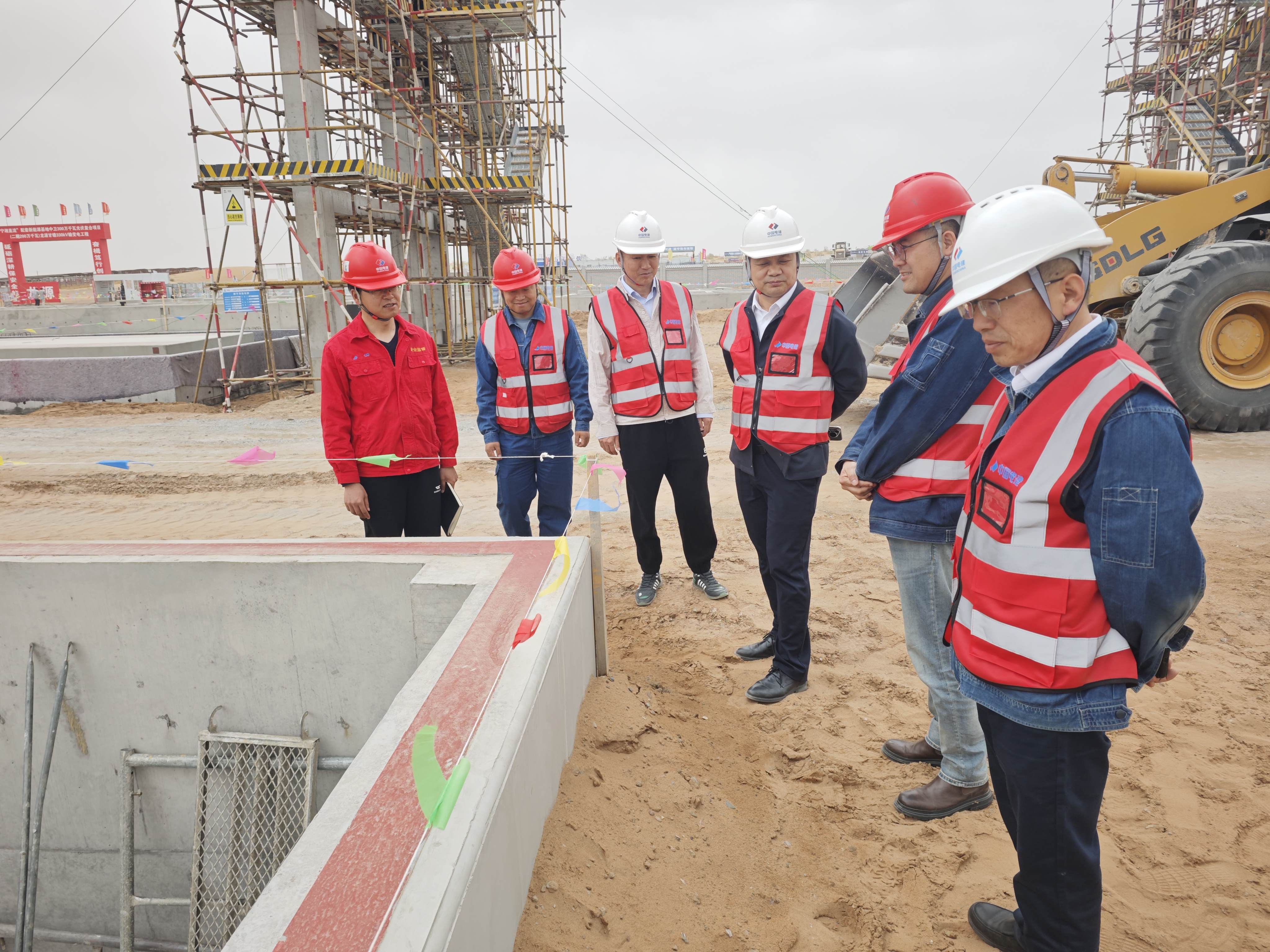 石光员深入项目一线,实地调研升压站工程、外送线路工程等现场重要施工区域,详细了解项目进度、质量、安全及成本管控情况,并对“人、机、料、法、环”逐一进行验证。