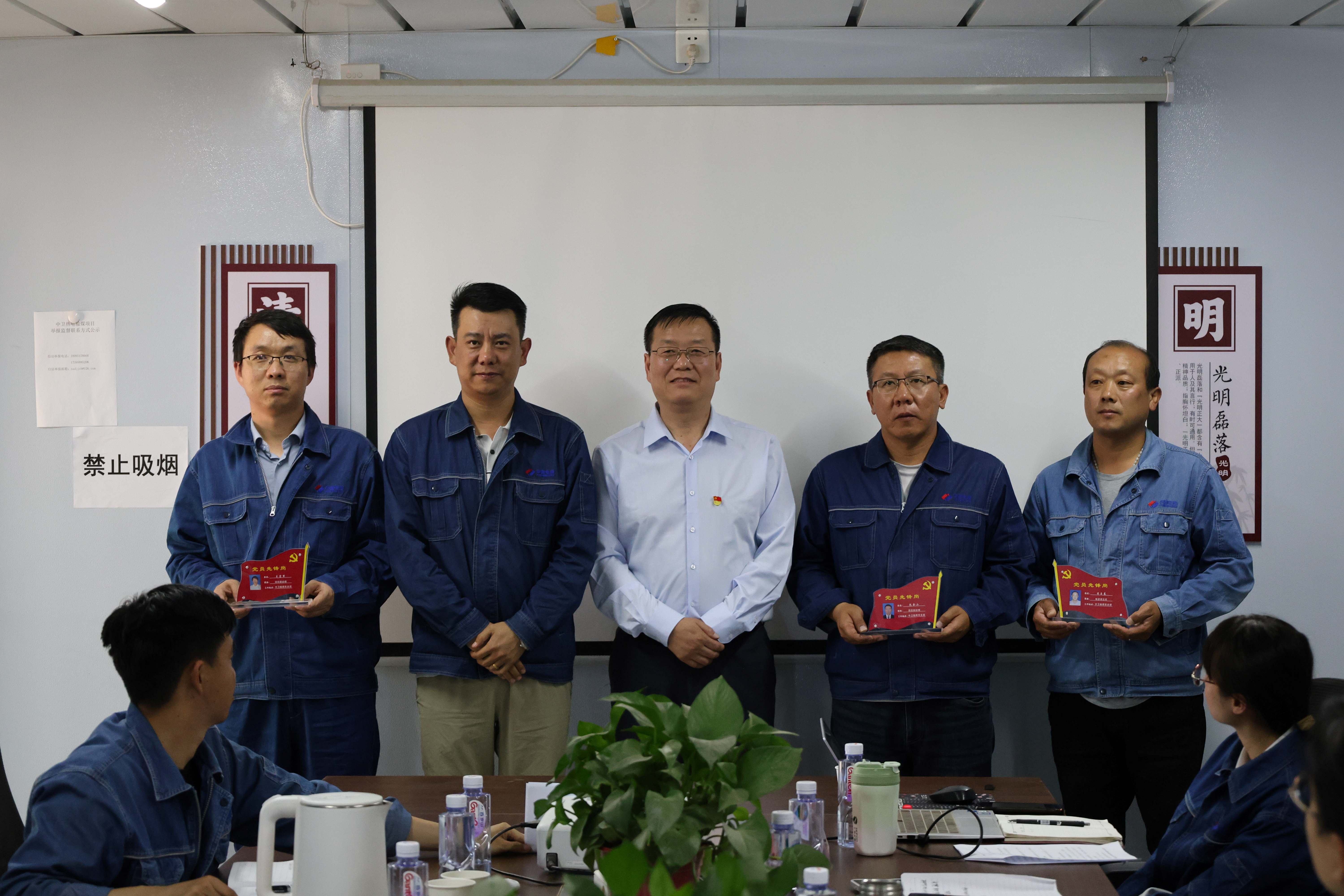 本次活动授予李玉东、王宏军、包金山三位同志“党员先锋岗”称号,以表彰在中卫输煤项目“节约100”活动中的主力军作用,同时聚焦作风建设及中央八项规定,结合现场管理实际,开展知识竞赛活动。