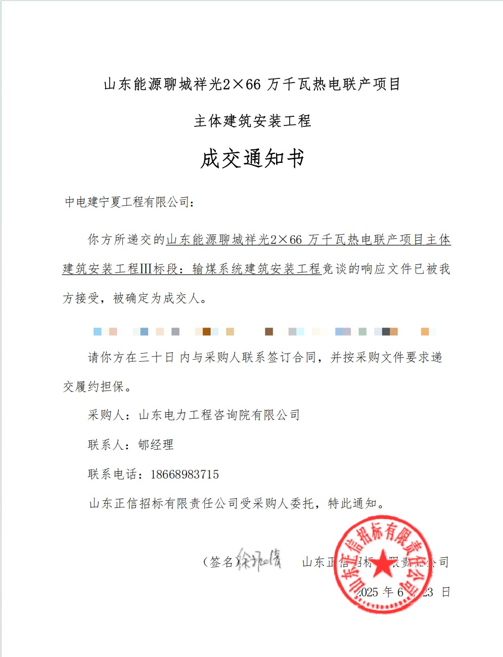 6月23日,公司中标山东能源聊城祥光2×66万千瓦热电联产项目主体建筑安装工程III标段输煤系统建筑安装工程。施工范围包括输煤系统建筑安装工程施工、单体调试、项目管理、技术服务、竣工验收配合、质保期服务等工作。