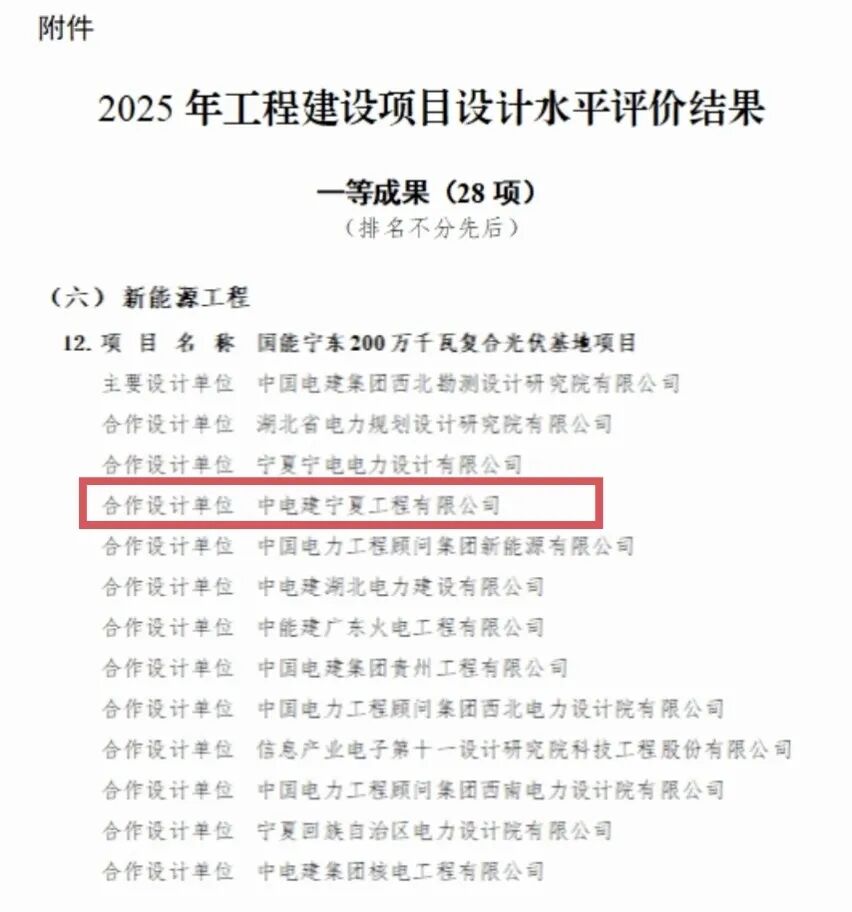 国能宁东2GW光伏基地配套输变电项目再获设计一等奖