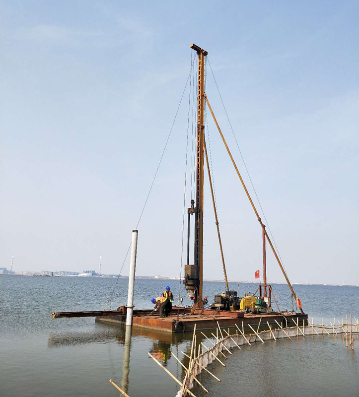 华东院无棣县友发二期渔光互补光伏电站项目水上打桩施工试装成功