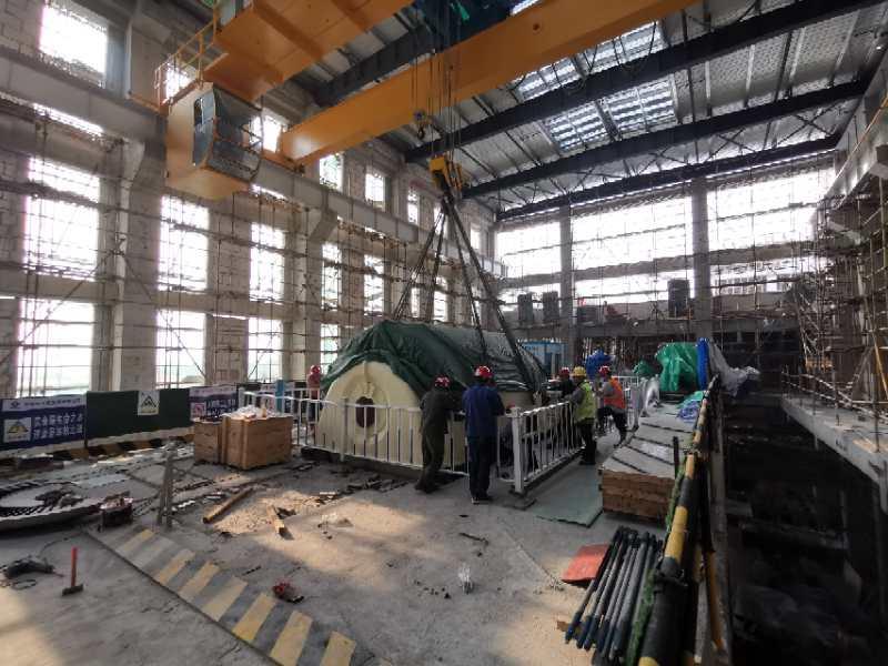 宁波奉化垃圾发电项目汽轮发电机定子吊装就位