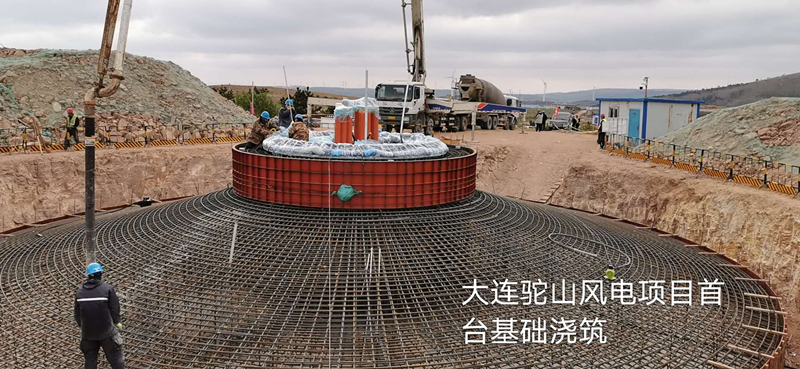 大连驼山风电项目首台风机基础浇筑完成