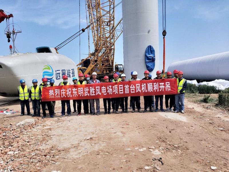 山东菏泽东明武胜风电场项目首台风机开始吊装