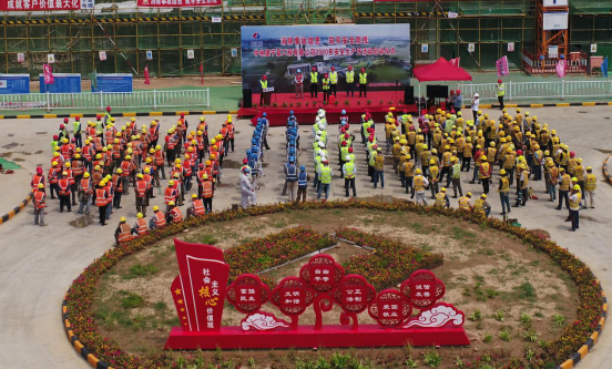 公司副总经理孔国权、安全总监韩道永出席仪式并讲话。公司本部、项目参建人员及各施工现场通过视频连线近500人参加。公司在银领导出席启动视频会。威县项目经理郭建新现场主持活动。