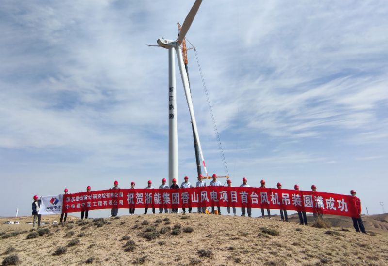 浙能宁夏中卫香山120兆瓦风电项目首台风机吊装完成
