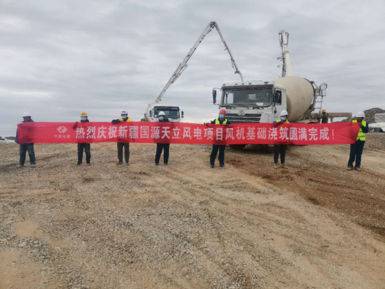 9月29日下午,新疆国源天立木垒老君庙风电一期49.5兆瓦项目最后一台风机基础混凝土顺利浇筑完成。