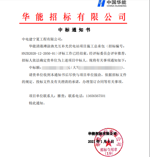 近期,公司喜中华能国际电力股份有限公司浙江分公司华能清港滩涂渔光互补光伏电站项目施工总承包项目,实现了2021年市场开发开门红。