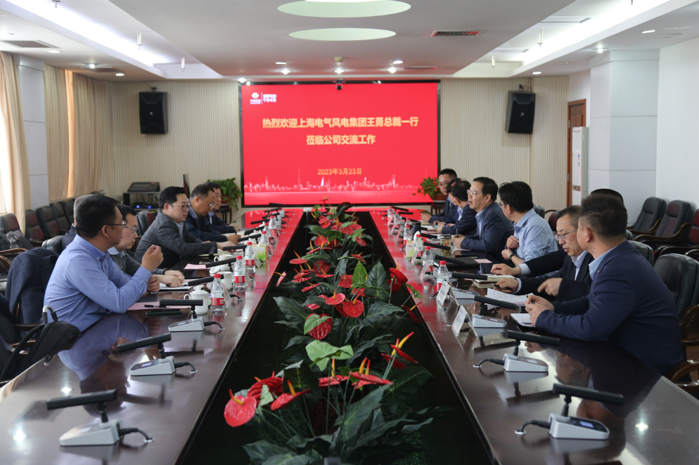 3月23日,上海电气风电集团股份有限公司总裁王勇、副总裁郑刚一行6人来银开展业务洽谈。公司党委书记、董事长李坤,常务副总经理孟德江,副总经理、总工程师铁少斌及市场部、工程部、企管质保部、物资公司等相关负责人参加会议。