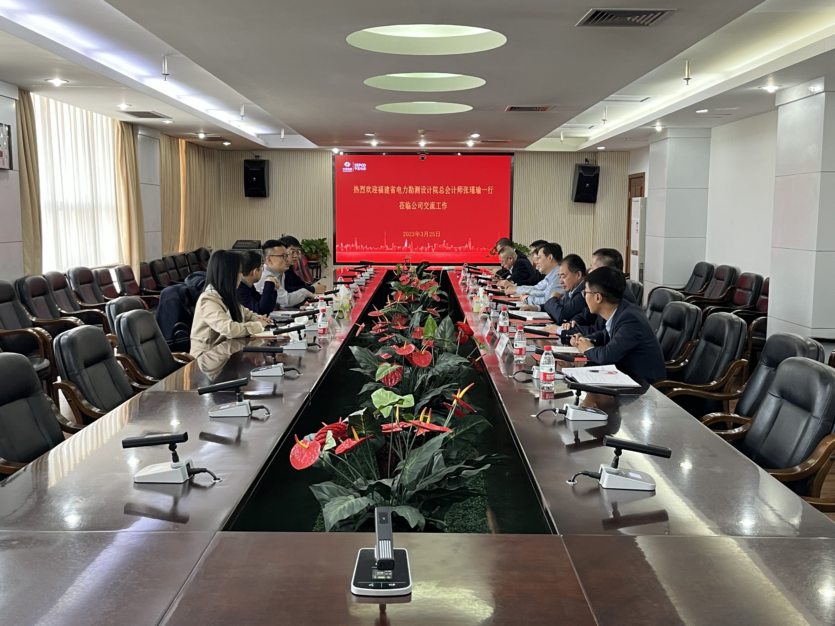 3月27日,福建省电力勘测设计院总会计师张瑾瑜、福建院发电分公司总经理邹晓昕一行4人来银与公司开展业务洽谈。公司党委书记、董事长李坤,副总经理孔国权,副总工程师、市场开发部经理王琅及工程部、经营部、财务资金部、基础产业公司等相关负责人参加会议。