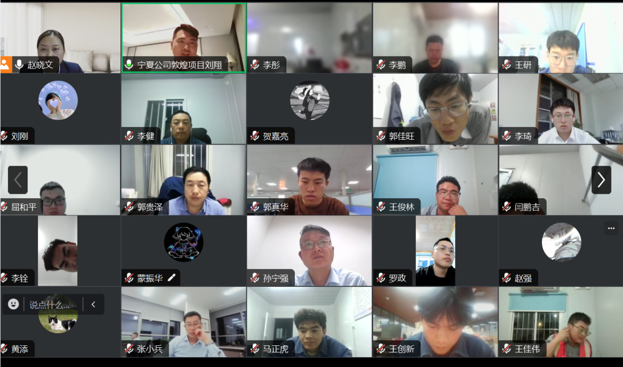 随后,基础产业公司领导班子成员进行表态发言。公司主任师张小兵结合自身工作经历进行分享交流,希望大家要目标明确,有方向,有动力,要学会解压,丰富自身知识储备,发挥自身潜力,努力拼搏。公司副经理郭贵泽提出了三个问题:一是大家毕业后来到宁夏电建是为了什么?二是将近一年的时间大家得到了什么?三是这一年你为企业贡献了什么?通过三个问题让大家反省自身是否努力到位,是否满足自身预期,寄语大家先苦后甜,明确目标,利用闲暇时间学习充实自身。李健表示,后续将陆续为职工提供各方面培训学习的机会,共同学习进步。公司党支部书记刘翔就交流中大家提出的问题一一进行解答,鼓励大家积极努力为公司创效益,为自身谋福利,在工作岗位上要积极主动学习,干工作要问心无愧,要勤思考多反省,善于学习,善于总结,提升自己的技术硬实力,与同事友好交流,提升沟通交流能力,不倾听不传播负能量,并制止负能量传播,把银川、西安公司当做家,鼓励员工多回“家”看看,多宣传美化自己的“家”。