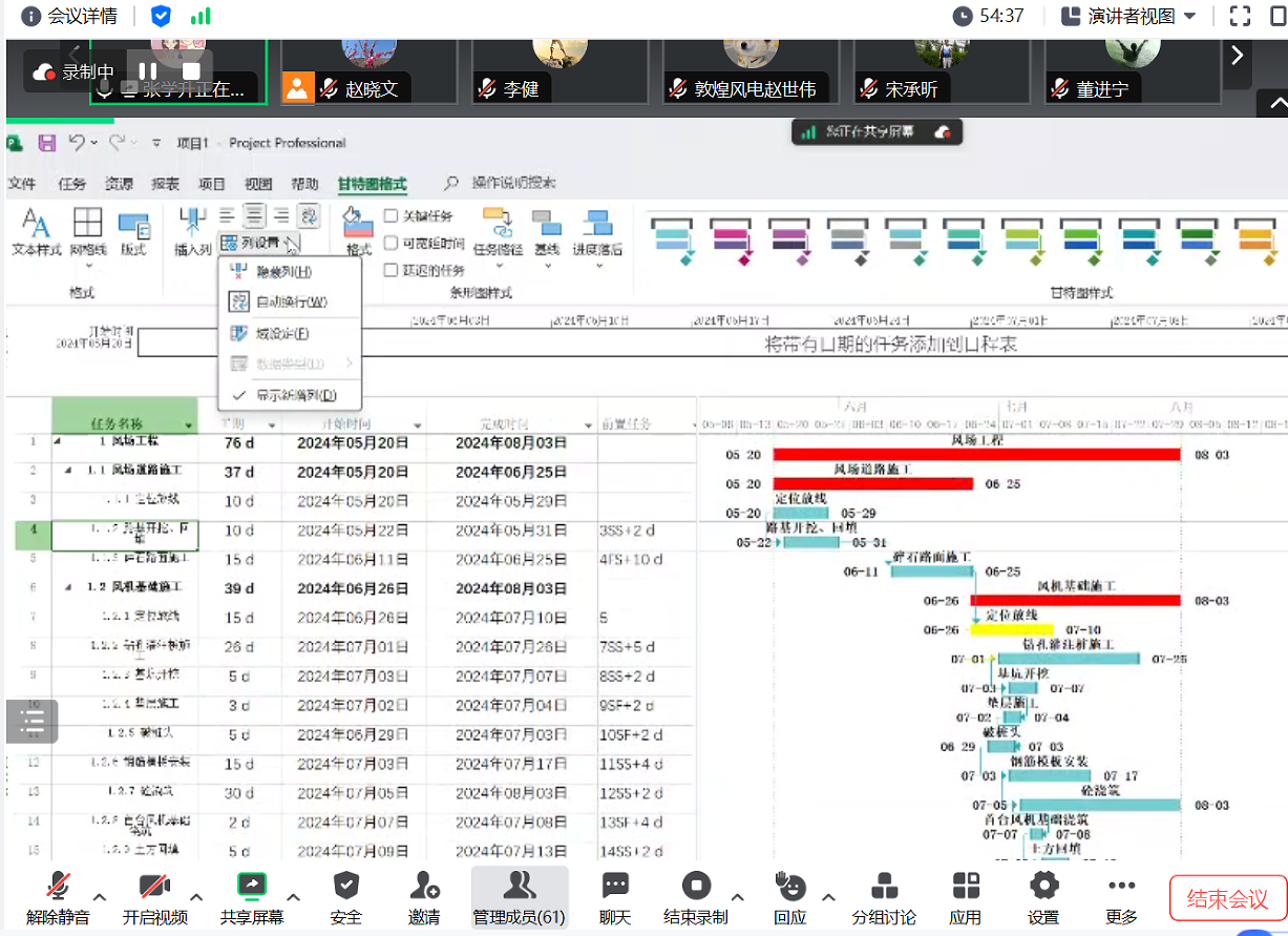 5月20日,基础产业公司组织开展Project进度管理软件应用知识培训,此次培训旨在提升新员工及技术人员对Project软件日常操作技巧及实用功能的使用能力。培训由项目副经理张学升主讲,基础产业公司副经理兼总工李健、各项目班子成员、技术人员及新入职员工60余人参加此次培训学习。