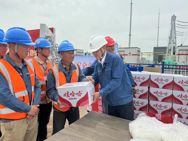 最后,由现场施工队伍代表王述军就安全生产进行承诺发言,并在现场举行了安全保证签名和防暑降温物资发放活动。员工们在横幅上签下自己的名字,承诺将注意个人身体健康,严格遵守安全规定,共同维护施工现场的安全稳定。