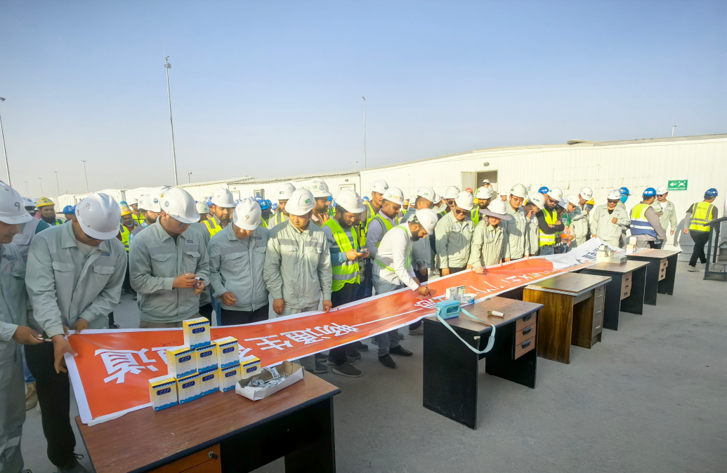 启动仪式上,全体现场人员在印有“安全生产月”主题的条幅上进行签名,公司沙特国王港项目部“安全生产月”活动正式启动。