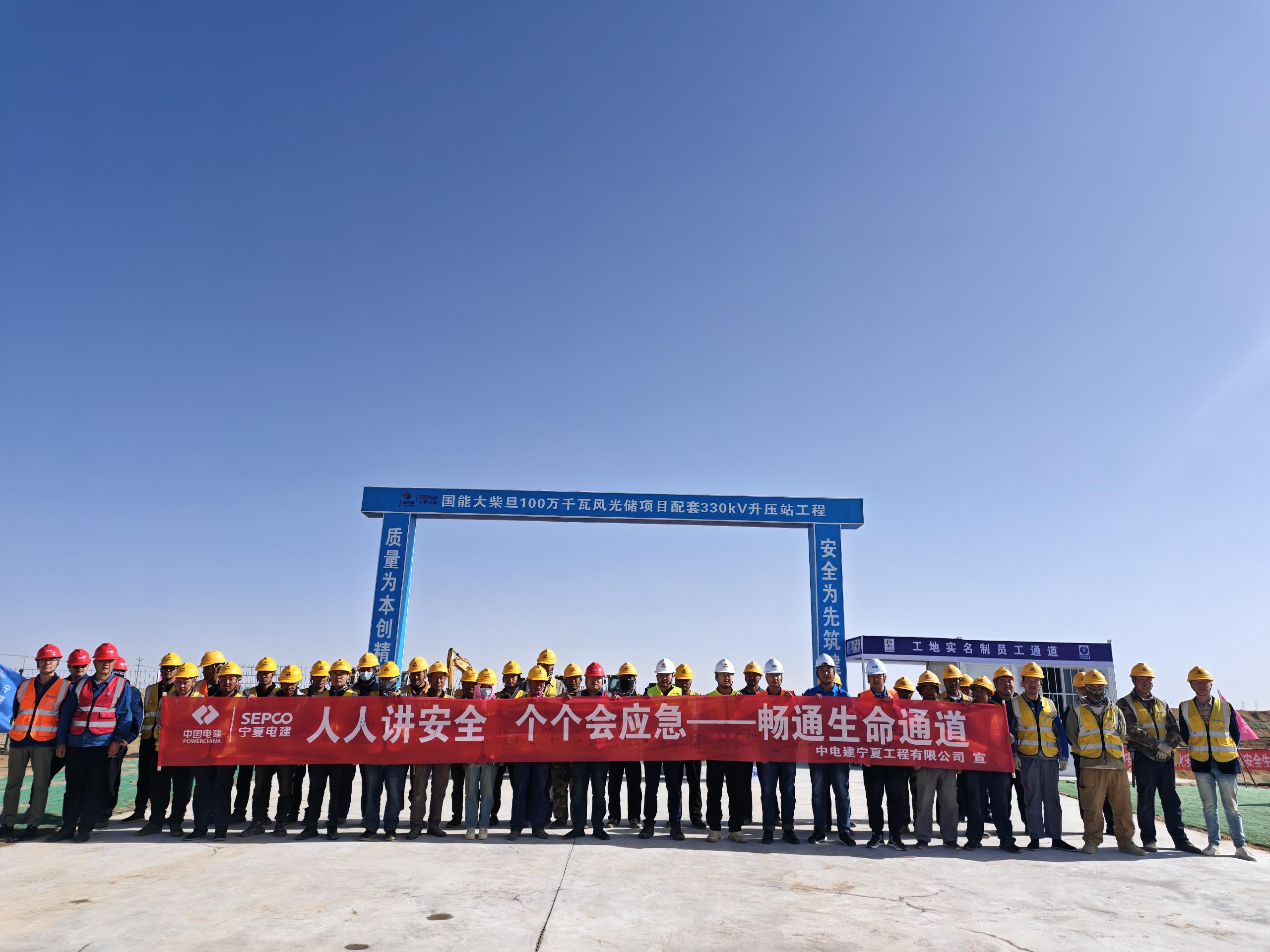 启动仪式上,项目经理韩涛作动员讲话。他指出,按照国家能源海西光伏发电有限公司的统一部署以及本公司对“安全生产月”的指示要求,项目部要深入贯彻落实安全生产决策部署,坚持人民至上、生命至上,坚持安全第一、预防为主、综合治理,持续树牢安全红线意识,推动安全生产责任落实,切实提高风险隐患排查整改质量,切实提升发现问题和解决问题的能力水平,进一步提升全员安全意识和避险逃生能力,全力助推项目各施工节点的安全顺利实现。另外,项目部要围绕“安全生产月”活动目标任务,强化组织领导,积极开展形式多样的宣传教育活动,引导和启发每一位工人对生命价值的重视,强化工人的安全工作意识和安全生产的法律意识,真正做到人人遵章守法,营造良好的安全生产氛围,凝聚全员生产力量,实现安全生产状况的长期稳定和生产经营的正常进行,为完成大柴旦100万千瓦风光储项目配套330升压站工程项目安全生产目标奠定坚实的基础。