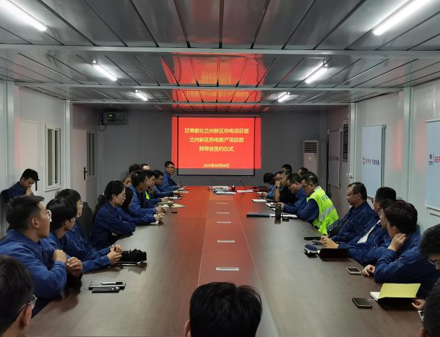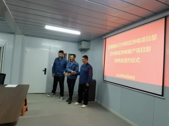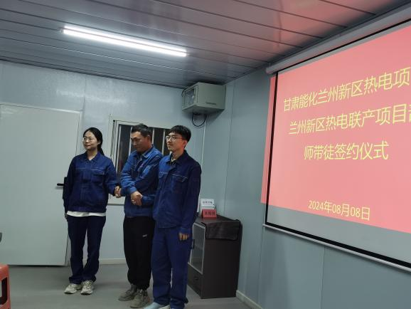 8月8日,甘肃能化热电项目与兰州新区热电项目共同举办导师带徒签约仪式,兰州项目党支部书记、项目经理邹力顺,兰州新区热电项目执行经理杨帅一行参加此次活动。