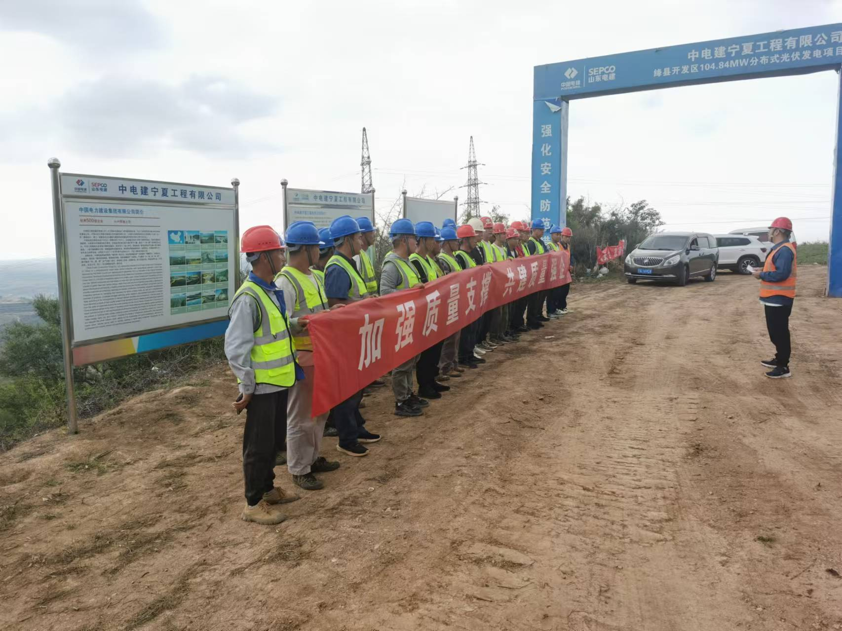 9月6日,山西绛县光伏项目召开以“加强质量支撑共建质量强企”为主题的“质量月”活动启动仪式,项目部全体员工及监理、施工单位相关人员参加本次活动,活动由项目总工程师王文彬主持。