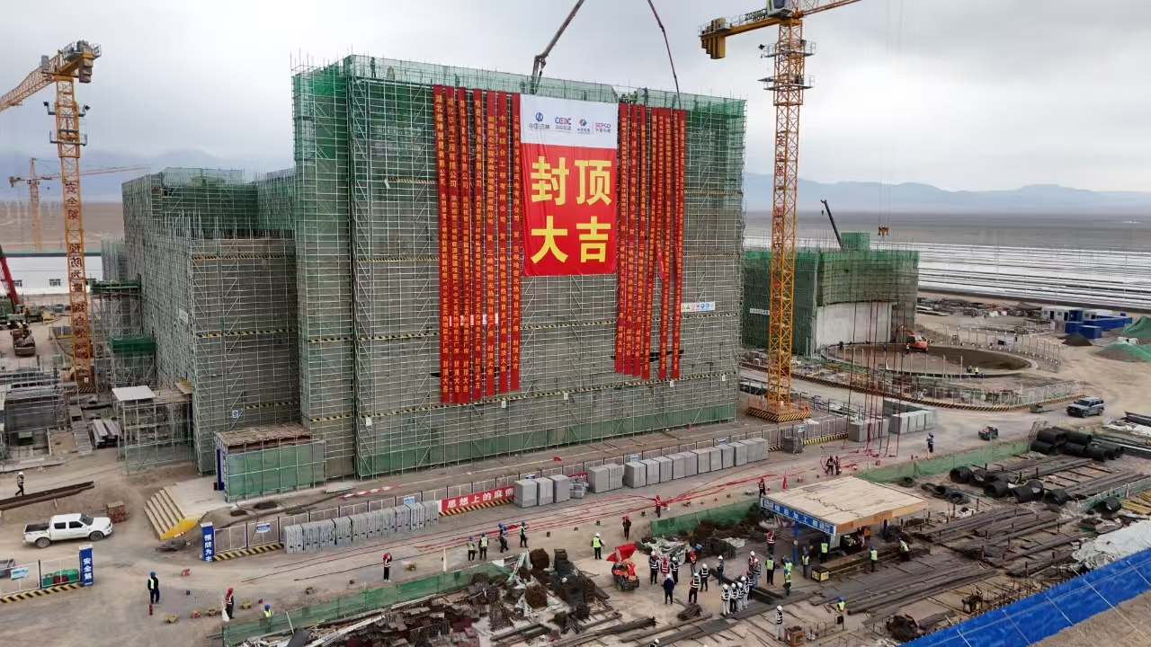 三峡能源新疆哈密综合能源示范项目100MW光热项目主厂房封顶