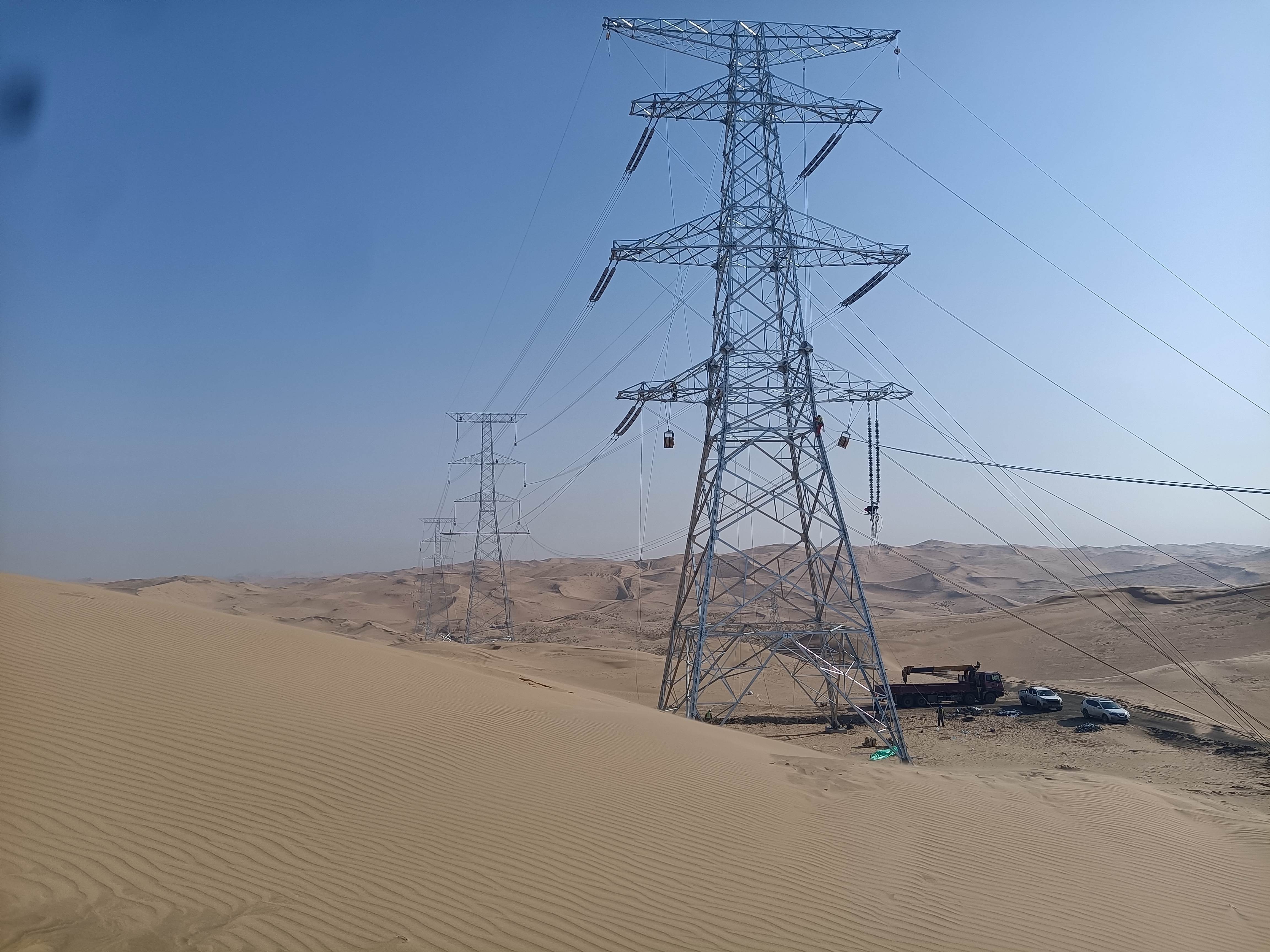 为确保项目节点顺利完成,项目部克服沙漠地带施工难度大、时间紧、任务重等不利因素,在业主、监理单位及乌海超高压局统一协调安排下,项目团队倒排工期、提前踏勘、编写技术方案,积极协调办理各项手续,采取最优施工方案,合理安排施工器具及人力资源配置,落实现场安全管控措施,有效降低施工风险,合理安排汽车吊及施工人员,进行组塔、吊装、立塔,仅用四天完成施工任务。据悉,10月14日,四基铁塔停电,并搭设跨越横担、封网、埋设地锚、布置张力场及牵引场设备;15日开始牵引跨越至19日结束。