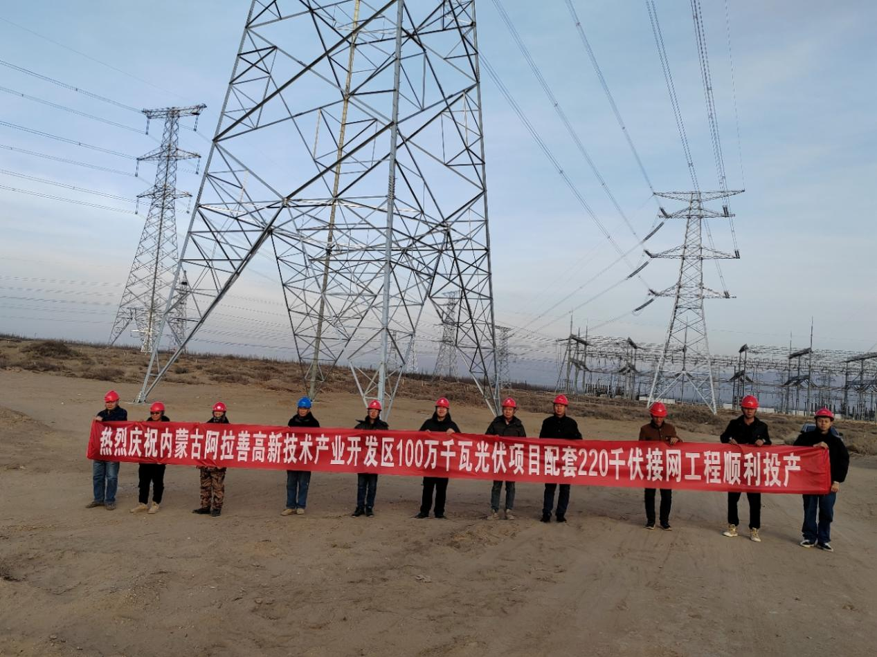 12月18日,阿拉善高新技术开发区100万千瓦光伏配套220千伏接网工程一次送电成功。