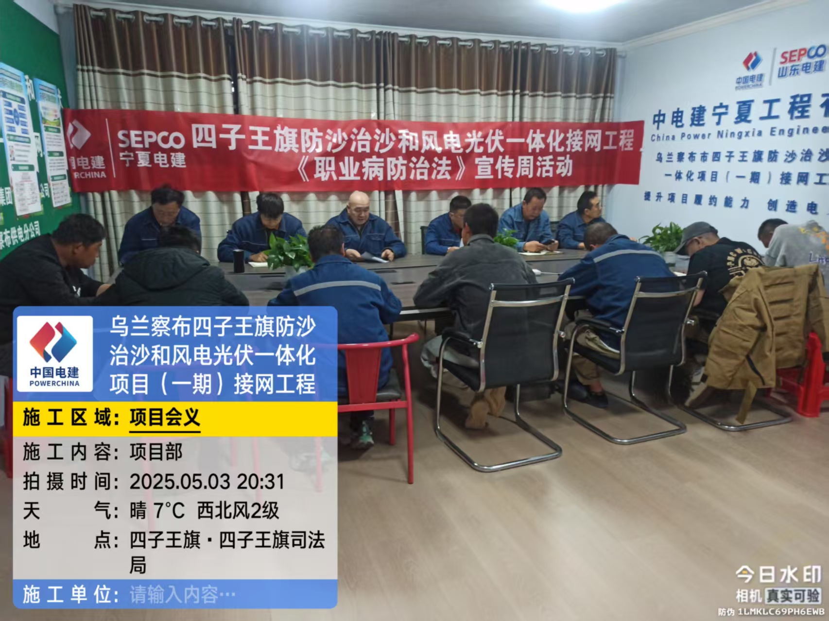 5月3日,四子王旗防沙治沙和风电光伏一体化接网工程项目开展《职业病防治法》宣传活动。