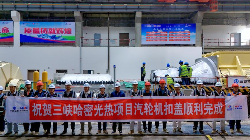 5月19日,三峡哈密光热项目部汽轮机扣盖一次成功。