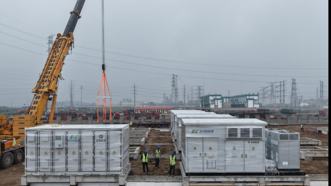 截至目前,项目综合楼等 4 栋附属单体建筑完成主体结构和装修装饰施工,储能区具备设备安装条件,升压站完成初设评审和桩基施工。如今,电池舱和PCS舱吊装工作的启动,为项目建成并网投运按下了 “加速键”。