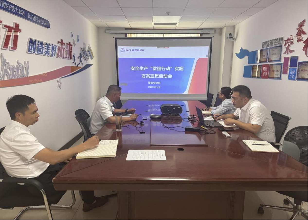 8月19日,输变电公司以“现场+视频”形式召开安全生产“雷霆行动”动员大会,输变电公司领导班子、各部室负责人、各项目经理、运维站长及安全、生产、技术等关键岗位共60余人参会。会议由输变电公司党支部书记兼安全总监李永斌主持。