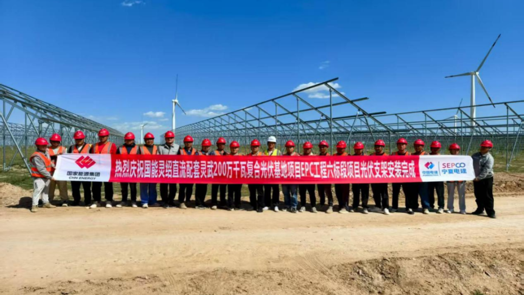 8月30日,国能灵绍直流配套灵武200万千瓦复合光伏基地项目 EPC 工程六标段实现支架安装全线竣工,为后续组件大规模安装及项目全容量并网奠定了坚实基础。