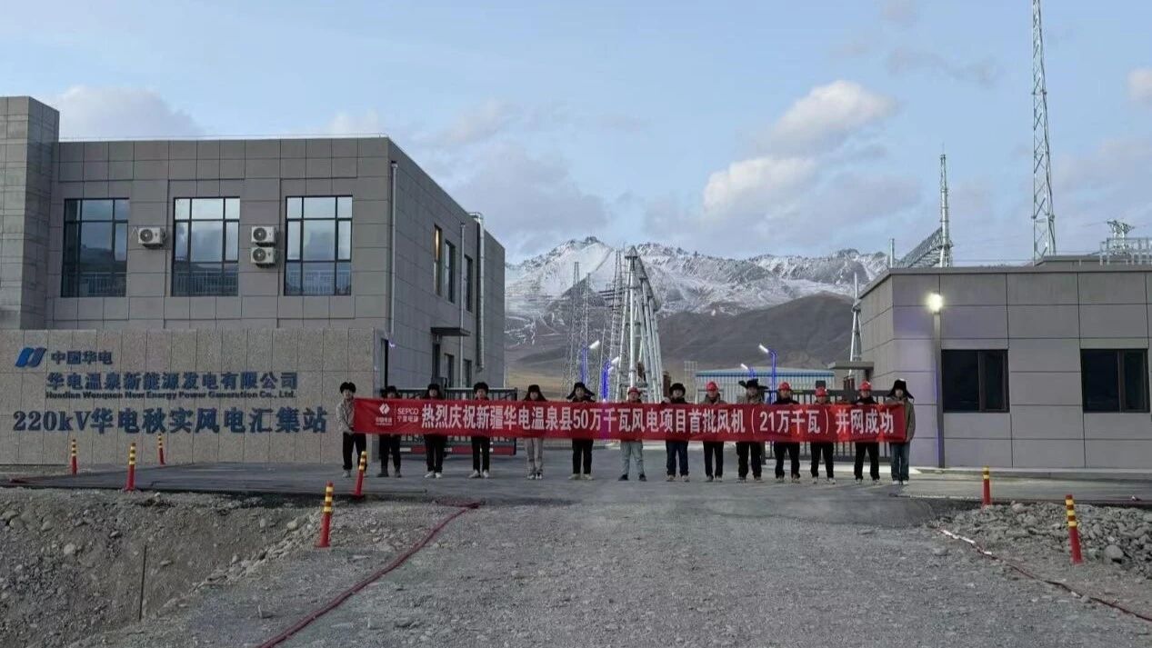 12月14日,新疆华电温泉县50万千瓦风电项目升压站及集电线路顺利带电,标志着项目建设取得关键阶段性成果。