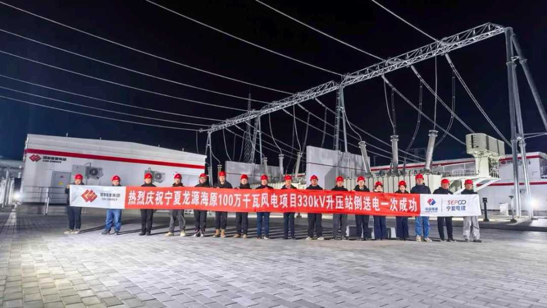 12月19日,龙源海原330千伏输变电项目一次合闸成功,各项设备运行稳定、参数精准达标,标志着项目首次倒送电圆满完成,顺利完成升压站设备带电调试关键环节,为“宁湘直流”工程添上关键一笔。