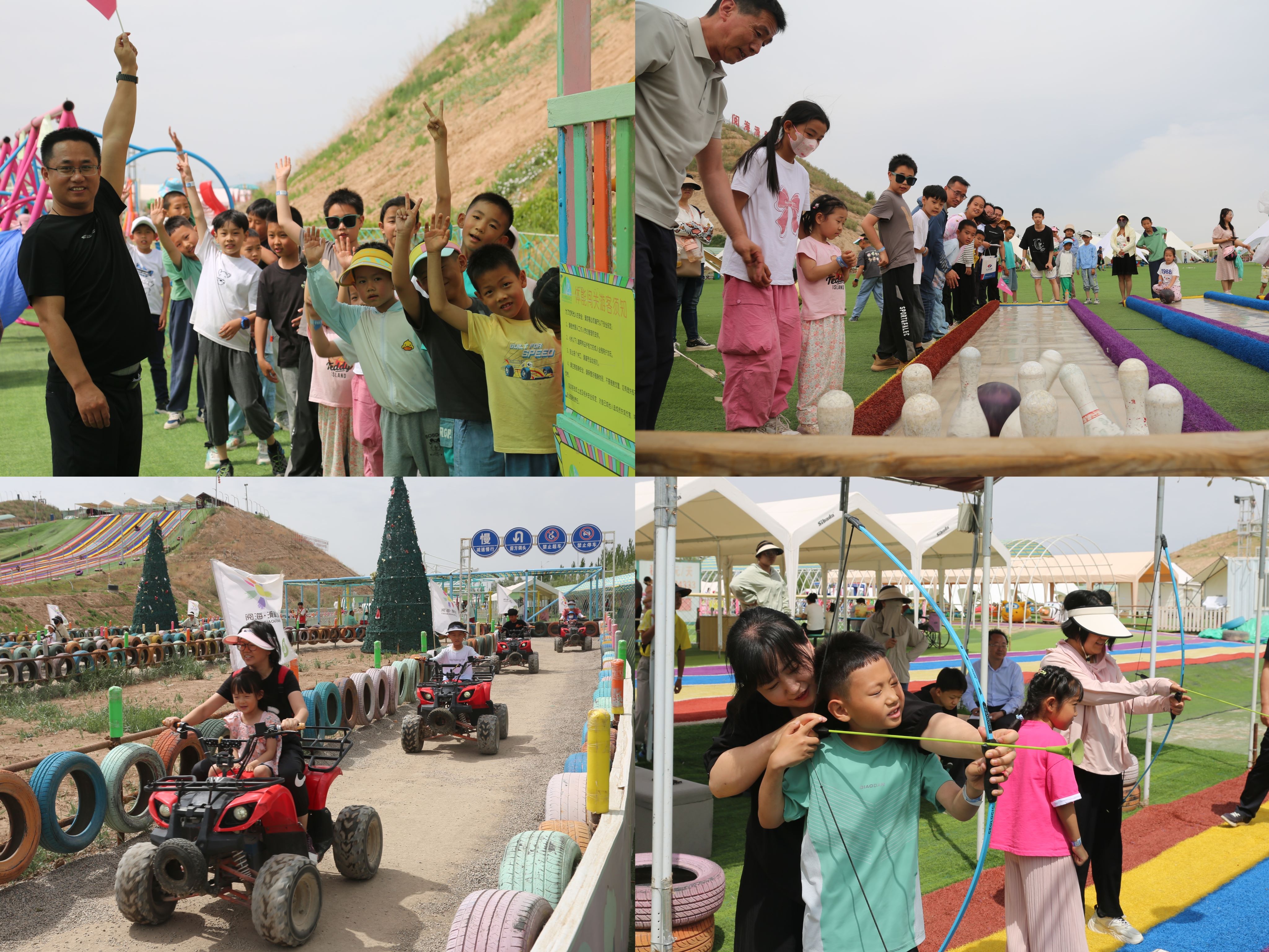 在滑草场,身处夏季超大的绿地,畅玩精彩的游戏,孩子们在阳光下肆意的撒欢奔跑,在欢声笑语中迎来一场亲子盛会。场地上,一道彩虹滑梯,孩子们急速飞跃,体验着速度与激情。“体能闯关”“趣味保龄球”“快乐城堡”中孩子们的快乐,让家长们也美美地在朋友圈中晒起一张张“网红照”。 家庭互动游戏,让孩子与家长亲切互动、深化感情。在烧烤场地,家长们早已点起了木碳、不惧烟熏火烤,手不停眼不离,忙着制作各种烧烤美食,等候着孩子享受大餐。